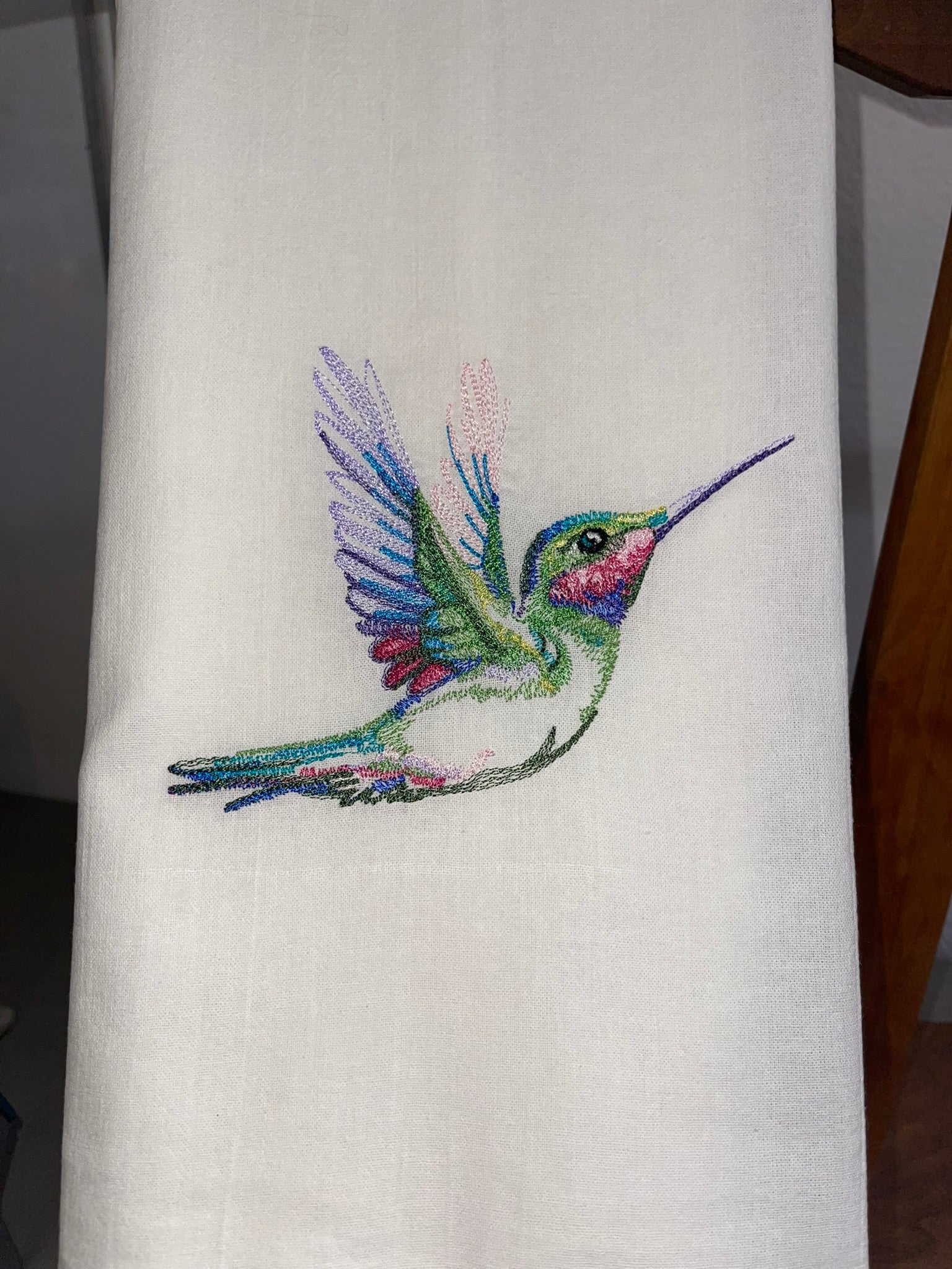 Add the beauty of this hummingbird embroidered towel to your kitchen.