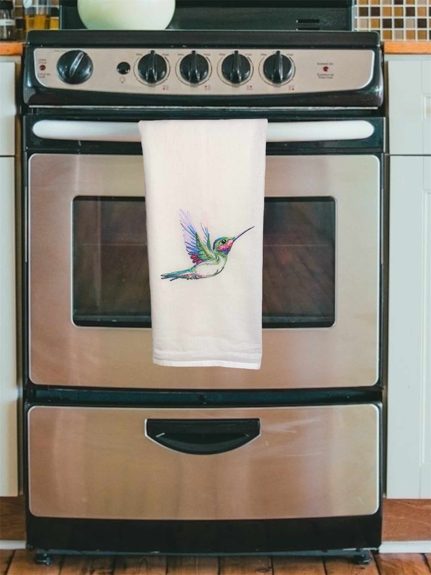 Beautiful Hummingbird Embroidered Kitchen Towel