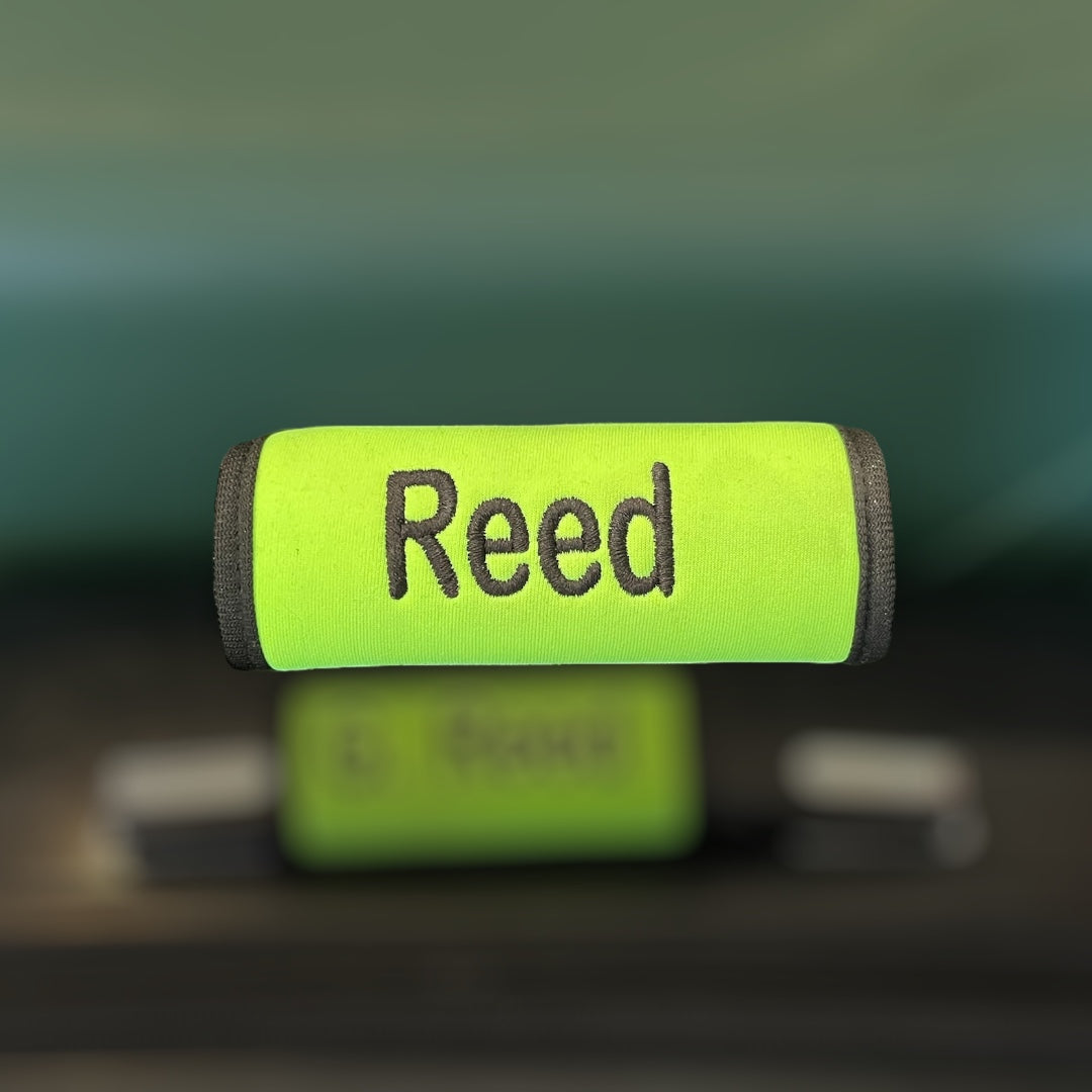 Spot your suitcase with ease using our custom embroidered Handle Wraps! Say goodbye to the stress of searching for your luggage at the carousel or in the overhead compartment. These wraps add a unique touch while helping you quickly identify your bag. Traveling just got a little bit easier (and more stylish)!