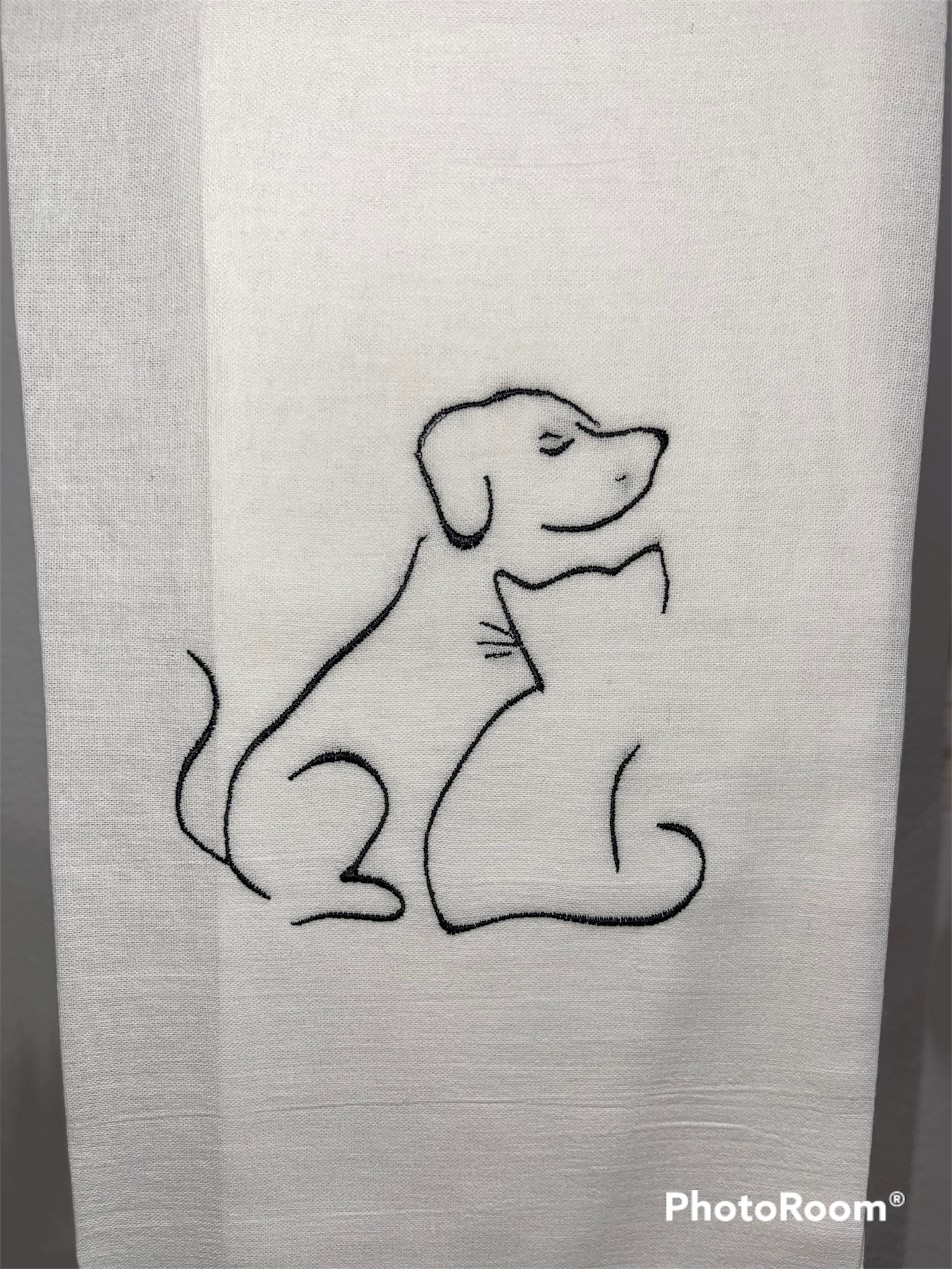 Add the sweet simplicity of Dog and Cat embroidered towel to your kitchen.