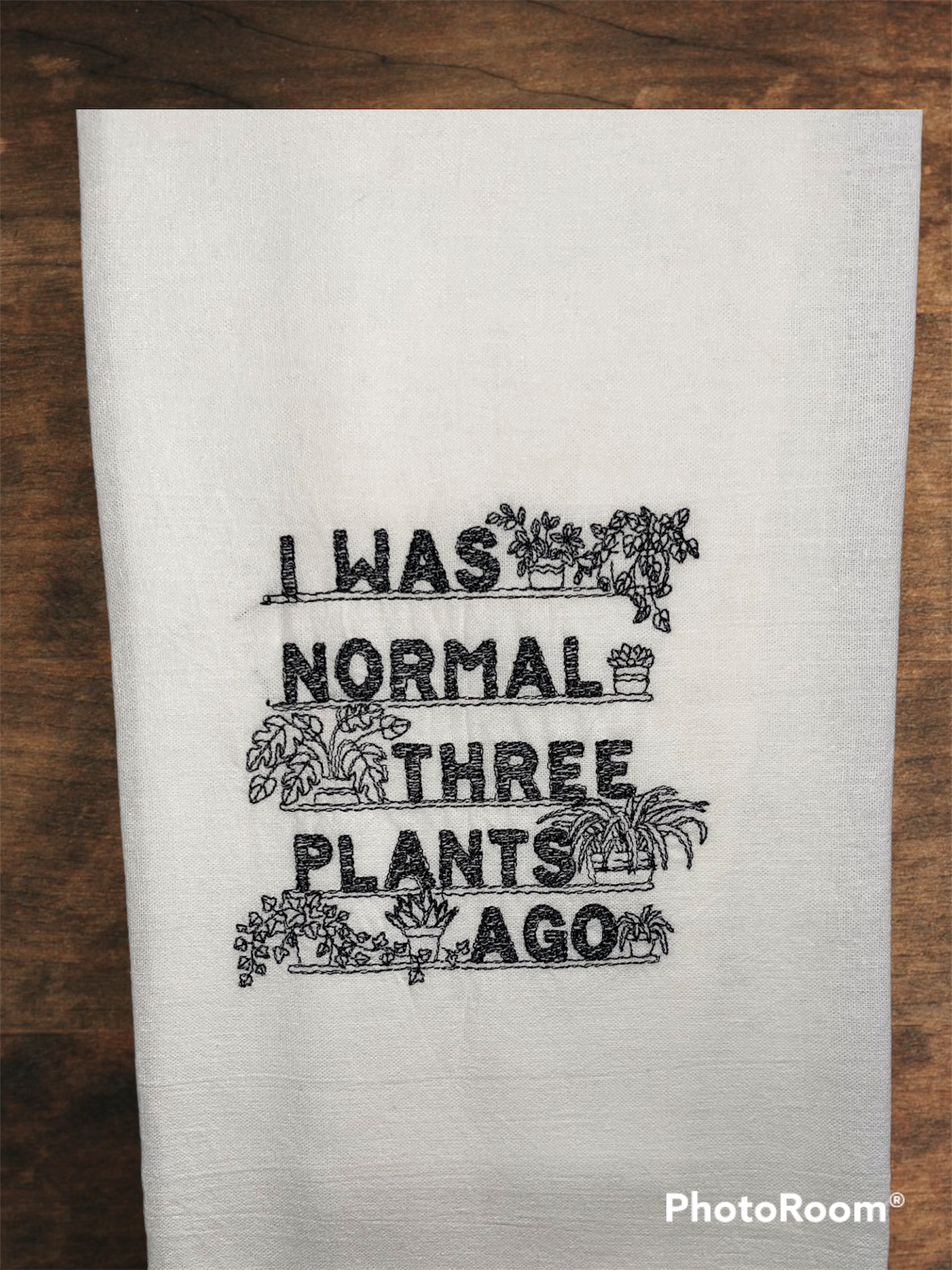 I Was Normal 3 Plants Ago Embroidered Kitchen Towel